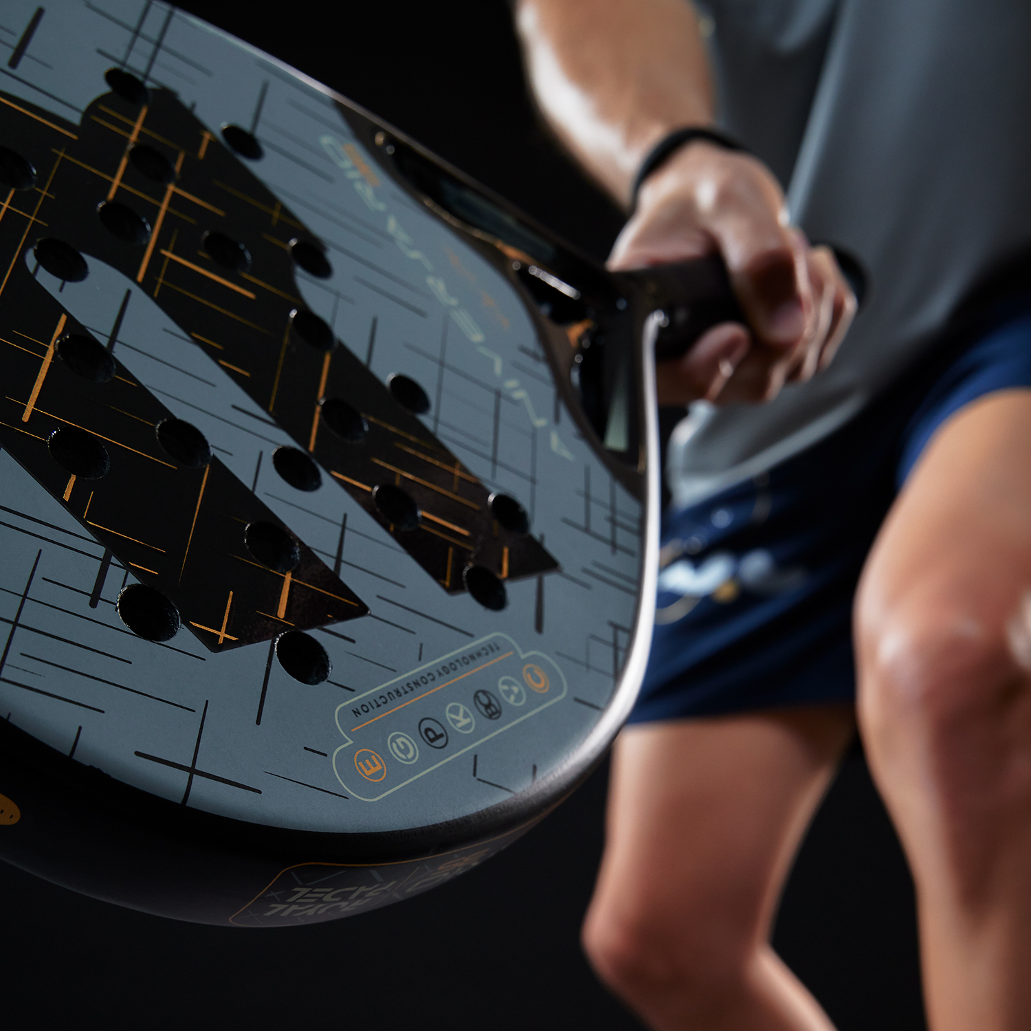 La disposición estratégica de los agujeros mejora la manejabilidad. Con un peso que varía entre 360 y 380 gramos, este modelo también tiene una versión light, perfecta para aquellos que buscan comodidad, logrando que jugar al pádel sea un placer, incluso para quienes han sufrido epicondilitis.