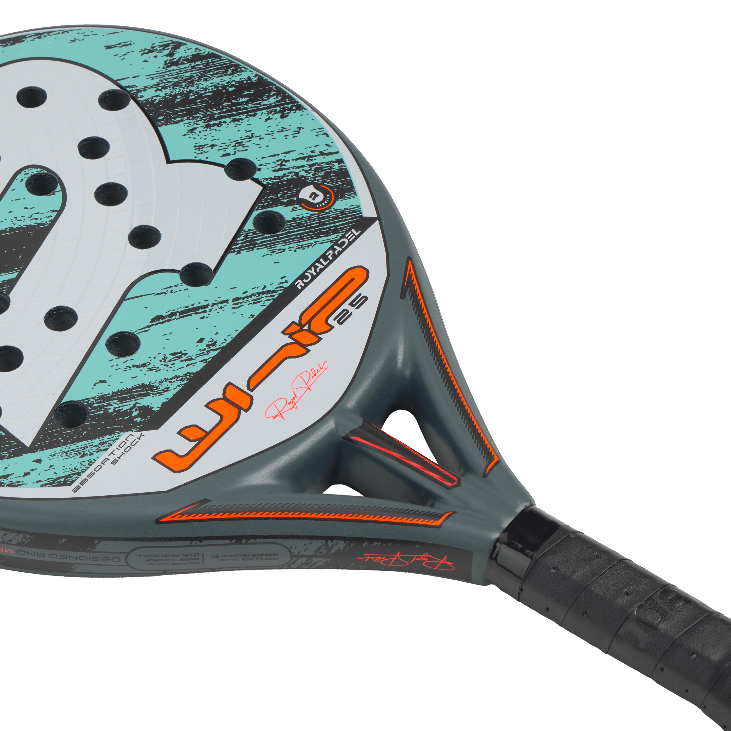 Esta pala cuenta con sistema “Shock Absortion” que reduce las vibraciones producidas por el impacto de la bola, evitando posibles lesiones de codo (epicondilitis) y hombro.